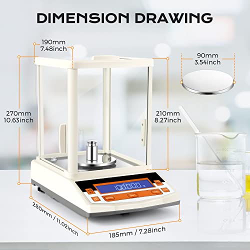 DISPLAY LCD HD-La bilancia analitica può ottenere risultati chiari e precisi in pochi secondi. Il suo display LCD HD, gli adepti di design del parabrezza in vetro in ambiente diverso. Le unità possono essere convertite tra g/ct/oz/lb/ozt. Il suo facile funzionamento e materiale di qualità lo rendono adatto per pesare precise in laboratorio, scuole, farmacia, gioielleria, impianto chimico e così via.