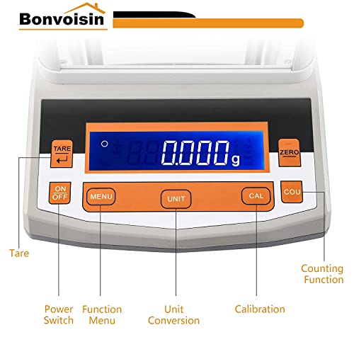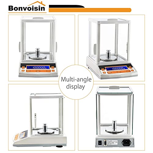 Bonvoisin Bilancia analitica 200 gx1 mg bilancia da laboratorio di precisione 0,001 g scala analitica digitale interfaccia RS232 da laboratorio Bilancia elettronica display LCD con parabrezza (200 g, 1 mg)