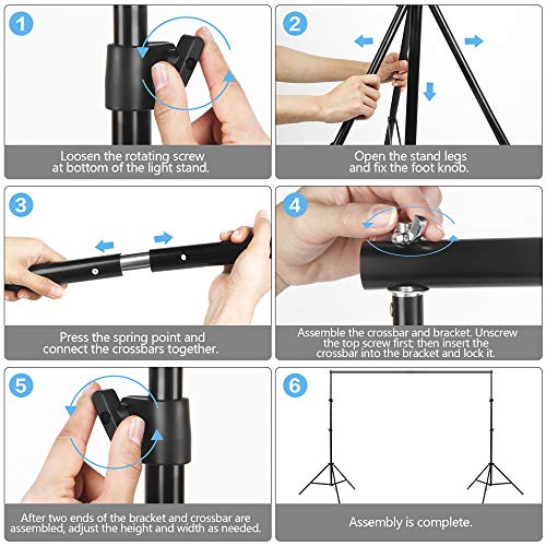 ❤Installazione Rapida: è possibile modificare facilmente l'altezza del supporto dello sfondo con le leve di regolazione rapida. Agganciare le traverse componibili, ruotare la manopola ergonomica sul supporto per regolare l'altezza e bloccarla, che può essere facilmente installata senza attrezzi e in pochi minuti.