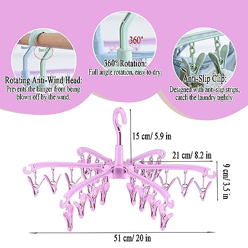 BONYCUST Stendibiancheria per calze da appendere con 24 mollette da bucato pieghevoli in plastica - per calzini biancheria intima vestiti per bambini pieghevole (Rosa)
