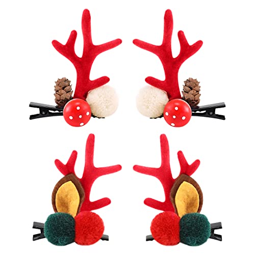 Diverse opzioni di abito: corna e orecchie decorate con fermagli per capelli, 4 set tra cui scegliere, accessori per capelli natalizi a colori. Solido e durevole.