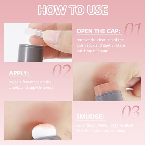 Uno ha più usi: Fard in stick multiuso per crema, fard per guance 3 in 1, tinta per labbra e ombretto in stick. Può essere utilizzato contemporaneamente per risparmiare il tempo del trucco (si può sfumare facilmente con un pennello o con la punta delle dita).