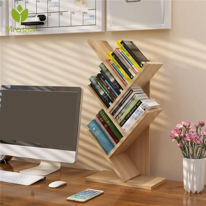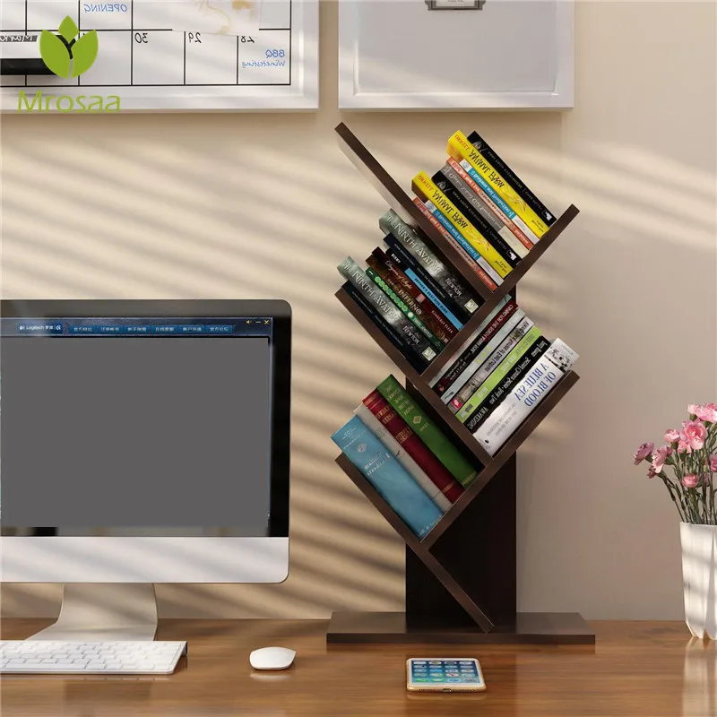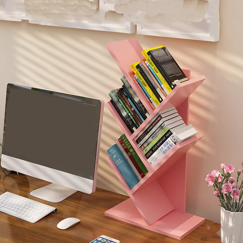 Bookshelf Desk Creative Study Bookcase Tree Shaped Furniture Decor Book Rack Multi-grid Storage Shelf Wooden Display Shelf