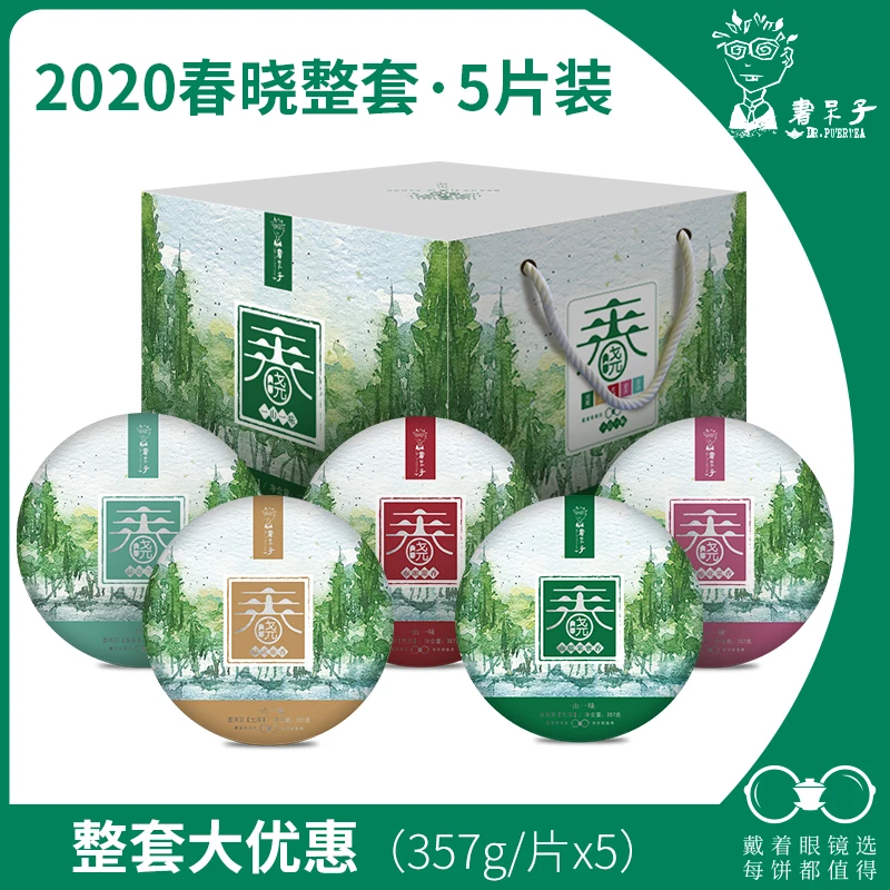 Bookworm Pu'er Tea Leaf Tea 2020 Spring Dawn Series Five Models 357g * 5 Pieces of Cake Tea
