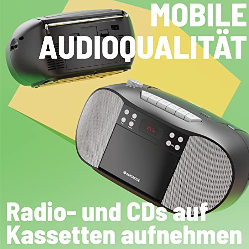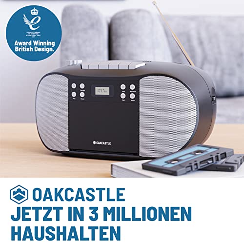 Boombox per lettore CD portatile Oakcastle BCX10 | Lettore di cassette e radio FM | Suono stereo 2.0 | 15 ore di riproduzione con batterie | Radio con lettore CD | Lettore di cassette portatile leggero