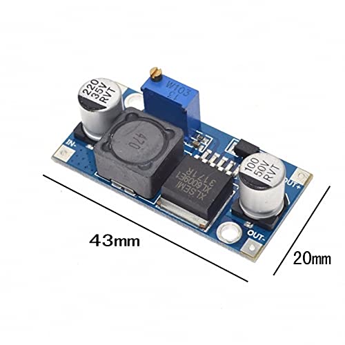Funzionamento semplice. Utilizzando un mini cacciavite per aumentare la tensione di uscita girando la vite scanalata sulla trimpot blu e monitorare la tensione con multimetro per raggiungere la tensione prevista, in senso orario per ridurre la tensione e in senso antiorario per aumentare la tensione. (1 cerchio significa +/- 1 V)