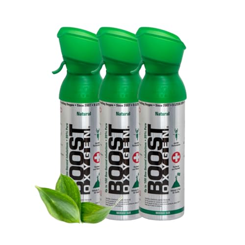Boost Oxygen - Bombola di Ossigeno Portatile - Bomboletta di Ossigeno Puro e Naturale al 95% - Concentrazione, Recupero, Energia, Umore, Medio - 15Lt, 3x5Lt (3x Pacchi - 300 Inalazioni) - Naturale