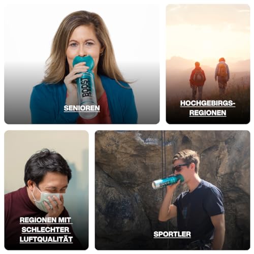 Sicuro ed efficace: Boost Oxygen fornisce ossigeno puro e naturale al 95%, senza stimolanti o additivi come caffeina e zucchero. Supporta la funzione cerebrale e cellulare ed è ideale per le alte quote, gli atleti e gli anziani