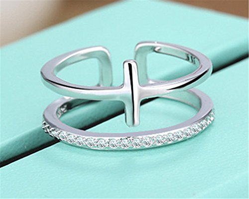 Boowhol - Anello da donna, in argento fine 925, frotao, con croce, ipoallergenico, regolabile, doppio