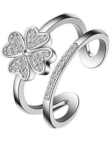 Boowhol - Anello da donna alla moda, in argento fine 925, ipoallergenico, regolabile, doppio anello