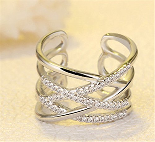 Boowhol - Anello da donna alla moda, in argento fine 925, con taglio a chiodo, ipoallergenico, regolabile, doppio anello