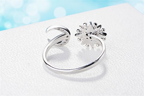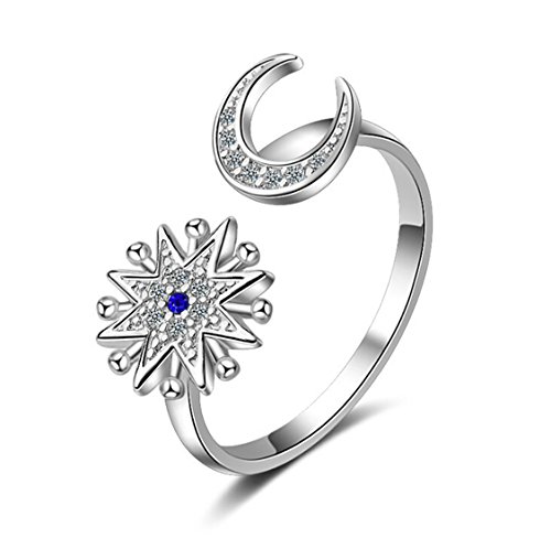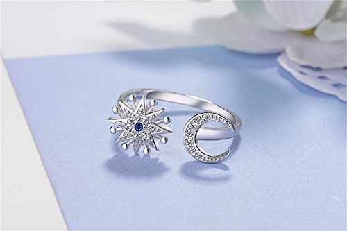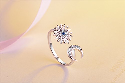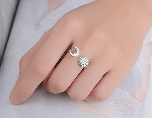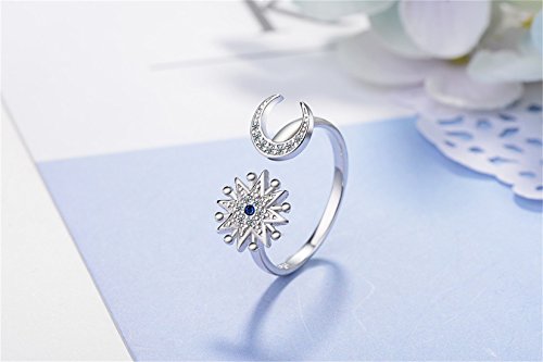 Boowohl - Anello di fidanzamento da donna in argento Sterling 925, con luna e zaffiro 5A, con zirconi 5A, con luna e sole, romantico, amore, fiori e stelle, in argento