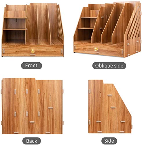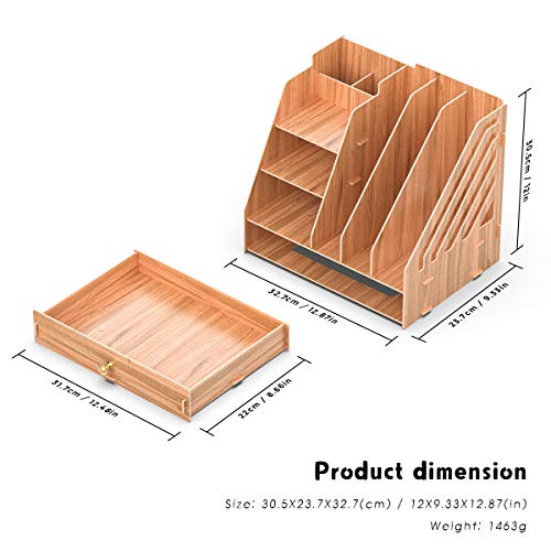 Booxihome - Organizer da scrivania in legno per cancelleria, organizer per fogli A4, libri, penne e quaderni