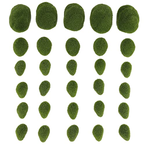 Bopfimer 30PCS 3 Dimensioni Artificiali Moss Rocks Decorative, Palle di Muschio Verde, per Giardini e Crafting Floreali