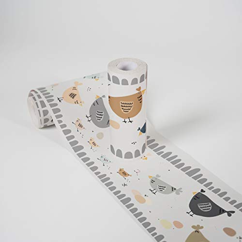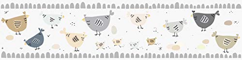 Bordi Adesivi Per Pareti Lovely Kids Chicken Party 5.00 m x 0.155 m Grigio Bianco Crema Prodotto in Germania da A.S. Création 403727