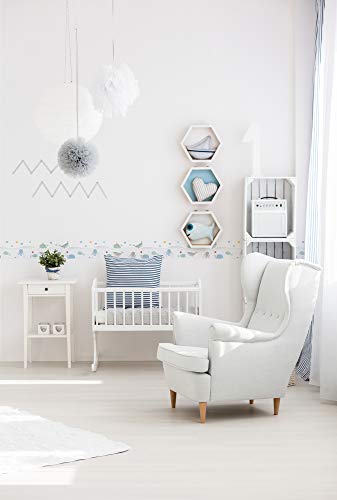 Bordi Adesivi Per Pareti Lovely Kids Ocean Party 5.00 m x 0.155 m Blu Grigio Bianco Prodotto in Germania da A.S. Création 403759