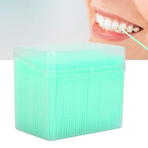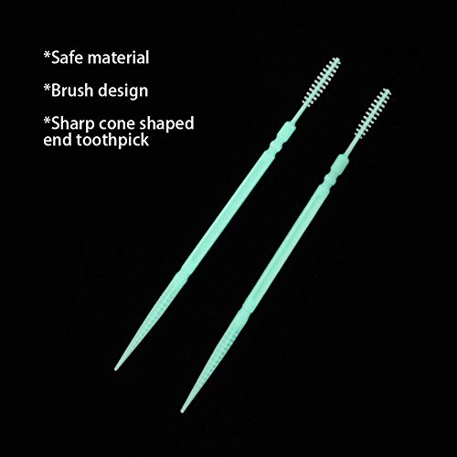 BORDSTRACT 1100 Pezzi di stuzzicadenti in plastica, spazzolini interdentali in contenitori Trasparenti Sicuro, Robusto Strumento per la Pulizia dei Denti a Doppia Testa(Verde)