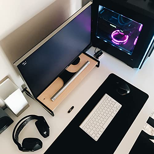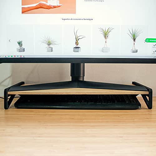 DESIGN ROBUSTO E DI QUALITÀ: Nonostante il suo aspetto sottile e minimalista, è in grado di supportare più di 20Kg di carico. Ha anche quattro alloggiamenti antiscivolo per mantenere la stabilità. Nel vano inferiore (ha l'altezza ideale di 50mm per riporre la tastiera all'interno e lasciare la scrivania completamente libera per lavorare comodamente. È ideale per casa/ufficio/soggiorno/camera da letto, perfetta da usare come supporto da scrivania.
