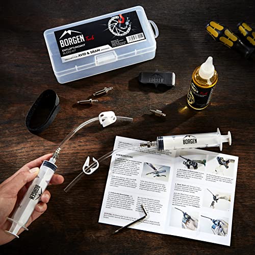 Borgen Kit spurgo Freni Adatto per AVID-SRAM Disco Idraulici │ Kit Manutenzione per Freni di Bicicletta │Kit spurgo con Istruzioni Passo a Passo Incluso Bleeding Edge