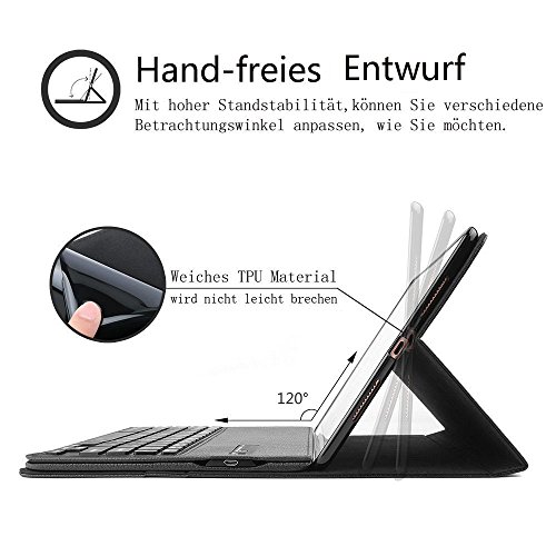 Funzione tastiera attributo - La struttura tastiera Bluetooth è tedesco. Si può staccare la tastiera dal case. Portata fino a 10 meter, Batteria al litio integrata, con USB per ricaricare al Keyboard.