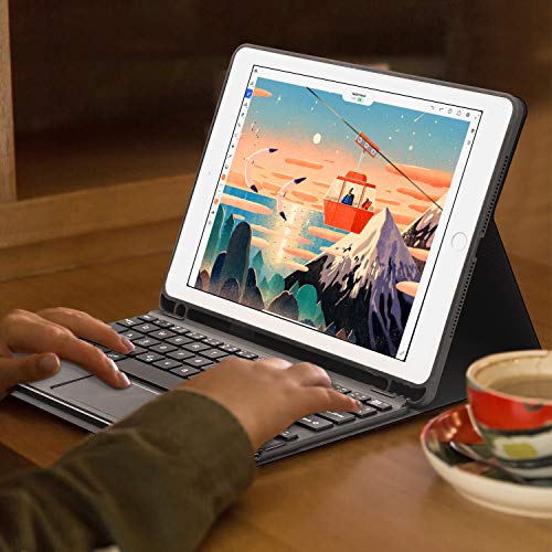 BORIYUAN Custodia per tastiera per iPad 9.7, per iPad 6 2018, iPad 5 2017, iPad Pro 9.7, iPad Air 1 e Air 2, Trackpad tastiera Auto Wake/Sleep Smart Cover, compatibile con iPad 9.7 pollici, nero