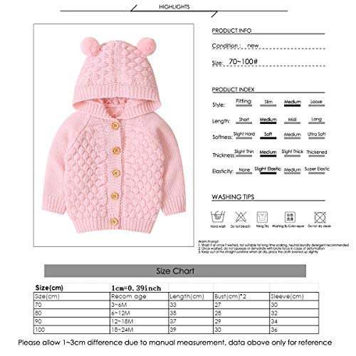 Borlai 3-24M Bambino Maglia Cappotto Carino Orso Orecchio Con Cappuccio Maglione Giacca Casual Cardigan Outwear per il Bambino, rosa, 24 mesi
