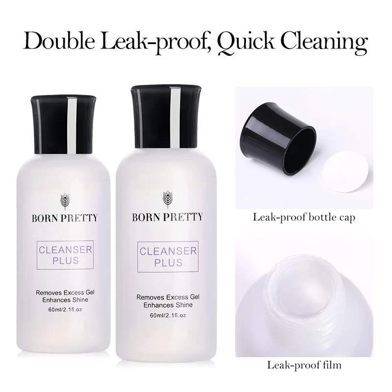 BORN PRETTY 60ml Cleanser Plus Removes Excess Gel Enhancement Remover Tips Clean Excess Gel Enhance Shining Effect Nail Art Tool