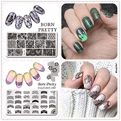 Born Pretty 6Pcs Nail Art Stamping Template Set French Design Flower Lace Cute Animal Manicure Print Image Plate