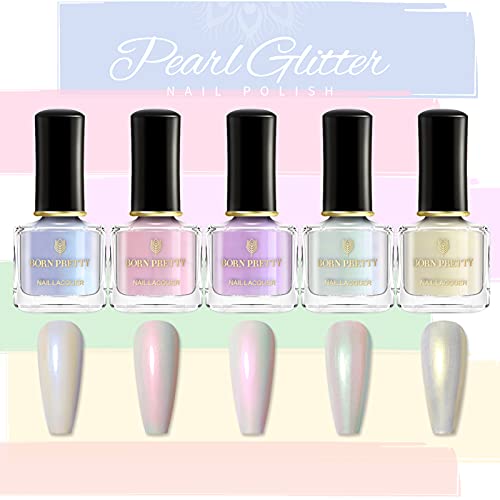 Born Pretty Smalto per Unghie Effetto Perla, Smalto per Unghie Madreperla Luccichio Trasparente Lucido Manicure