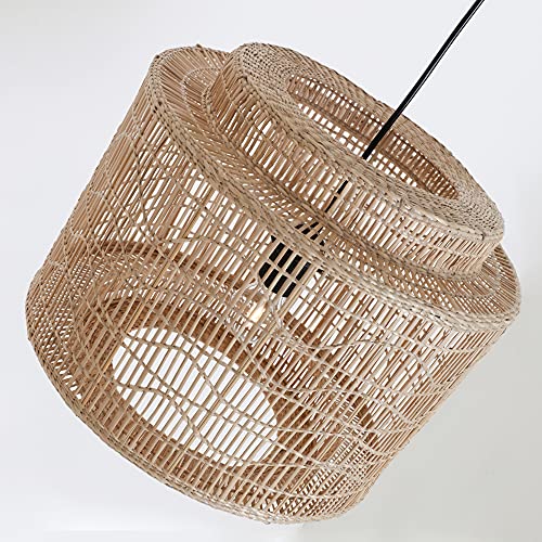La sospensione ha un paralume decorativo, intrecciato a mano in rattan dai colori naturali. Si inserisce perfettamente nelle tendenze contemporanee, naturali, bohémien benessere e bordo marino