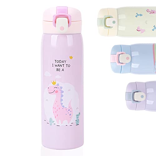 500 ml Borraccia Bambini Acciaio Inox,Bottiglia Termica Senza BPA, Bottiglie d'acqua Isolate a Prova di Perdite per Bambini Bambine, Bottiglia Acqua- Mantengono 12 Ore di Caldo e 24 Ore di Freddo Rosa