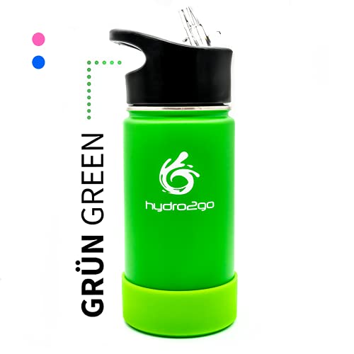Borraccia per bambini hydro2go ® in acciaio inossidabile - 350ml | Bottiglia termica in acciaio inossidabile senza BPA per bambini + 2 tappi per bere | Biberon per bambini a perfetta tenuta al 100% | Paglia e chiusura sportiva