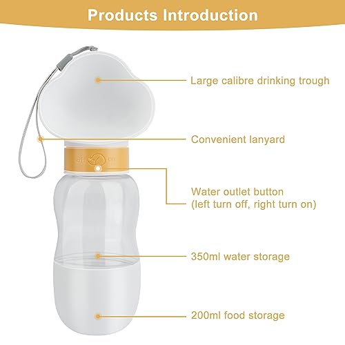Borraccia per Cani Portatile,350ML Bottiglia da Viaggio per Cani Gatti con 200ML Serbatoio per Alimenti, borraccia per cani portatile, Bottiglia da Viaggio, Bere all'aperto Pet per Cani e Gatti