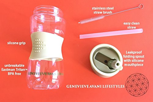 Borraccia con cannuccia per bambini in tritan, anti muffa, igienica, senza BPA Venduta con una spazzola in acciaio inox per pulire la cannuccia.