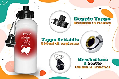 Borraccia Divertente Volpino - Il Sorriso del Volpino è nella coda - Borracce in Alluminio 500ML - Borraccia Bevande - Idea Regalo Amico - Idea Regalo Divertente Ragazza