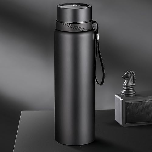 Borraccia Isolata 34OZ/1L, Borraccia Termica Nera con Display Intelligente della Temperatura, Borraccia Portatile in Acciaio Inossidabile con Cinturino, Borraccia Intelligente per Casa, Sport, Attivit