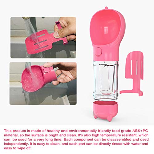 N+A - Borraccia multifunzione per animali domestici, portatile, con sacchetto per la spazzatura e raccoglitore, per cani, gatti, animali domestici, per passeggiate, viaggi, colore: rosa