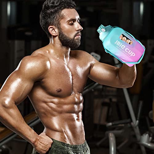 Borraccia da palestra - grande bottiglia d'acqua motivante da 3 litri con orari per bere, bottiglia d'acqua con gradiente di colore per uomini e donne con cannuccia per appassionati di fitness e
