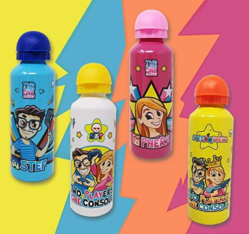 BORRACCIA TWO PLAYERS ONE CONSOLE personaggio STEF e PHERE Bianca Blu Fuscia Gialla 500 ml con braccialetto e fischietto (Bianca)