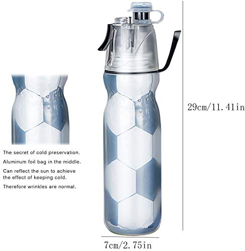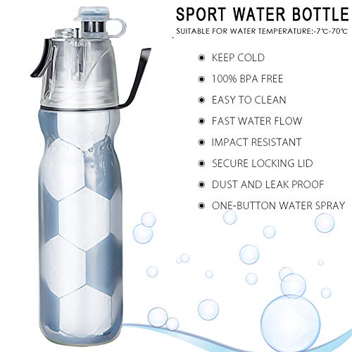 Borraccia portatile con nebulizzazione spray, per lo sport, a prova di perdite, a prova di perdite, per viaggi, escursionismo, ciclismo, campeggio, palestra, sport, 590 ml (nero calcio)