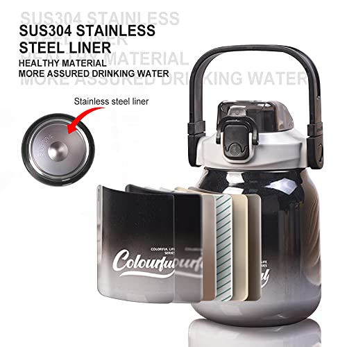 【Maniglia/cinghia doppio interruttore】: il thermos è dotato di un manico e una cinghia che può essere indossata sulla schiena o indossata sulla schiena, il che è pratico per il viaggio quotidiano;
