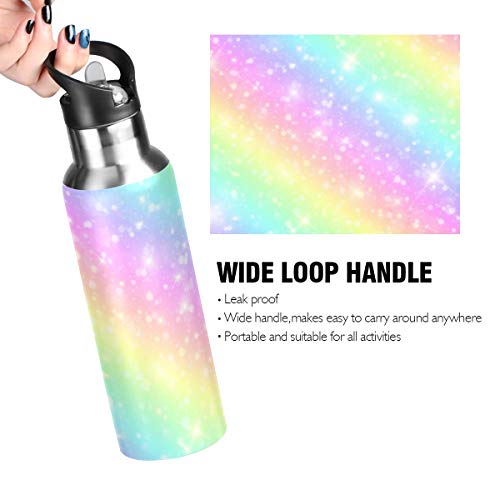 Borraccia termica termica con unicorno, arcobaleno, con coperchio galassia rosa, per bambini e ragazze, in acciaio INOX, 600 ml