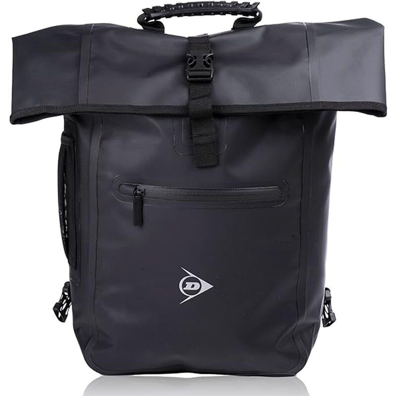 Con questo pratico zaino da bicicletta 4 in 1 di Dunlop potrai andare ovunque tu voglia senza preoccuparti dello spazio!La tasca frontale con cerniera è utile per gli oggetti che devi avere subito a portata di mano e offre spazio sufficiente per, ad esempio, telefono e portafoglio.Lo zaino ha una capacità di 25 litri, è impermeabile e dispone di quattro opzioni di trasporto per diverse situazioni.Lo zaino da bicicletta è dotato di due robusti spallacci per poterlo indossare comodamente come uno zaino.La tracolla con ganci inclusa ti consente di appenderla a spalla con la stessa facilità e c'è una maniglia nella parte superiore della borsa.Sul retro dello zaino da bicicletta troverai due ganci a morsetto in plastica con i quali puoi fissare lo zaino da bicicletta al portapacchi.Lo zaino da bicicletta ha una capacità di 25 litri ed è realizzato in tessuto impermeabile in modo che i vostri effetti personali rimangano ben protetti nella borsa da bicicletta Dunlop, anche in caso di
