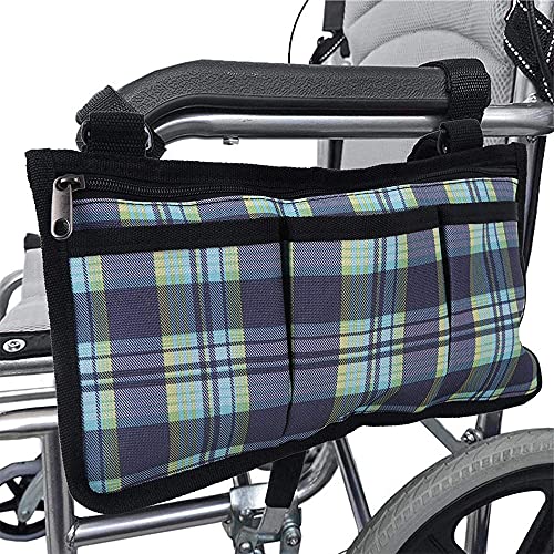 ✿Dimensioni Perfette: La nostra borsa accessori sedie a rotelle ha un ampio scomparto con cerniera e 3 tasche aperte con motivo a scacchi blu e misura 32,5 x 18 cm / 12,79 x 7,08 pollici. Rendi più comodo l'uso degli oggetti e la cura di ogni dettaglio di te.
