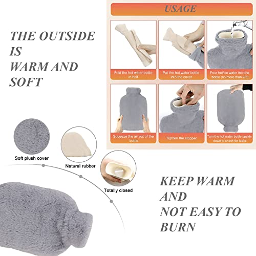 Borsa Acqua Calda, Borsa Dell'acqua Calda, Boule dell'acqua Calda 1L, Boule Acqua Calda Peluche, Adatto per Regali di Natale e Inverno per Famiglia,Gli amici (Grigie)