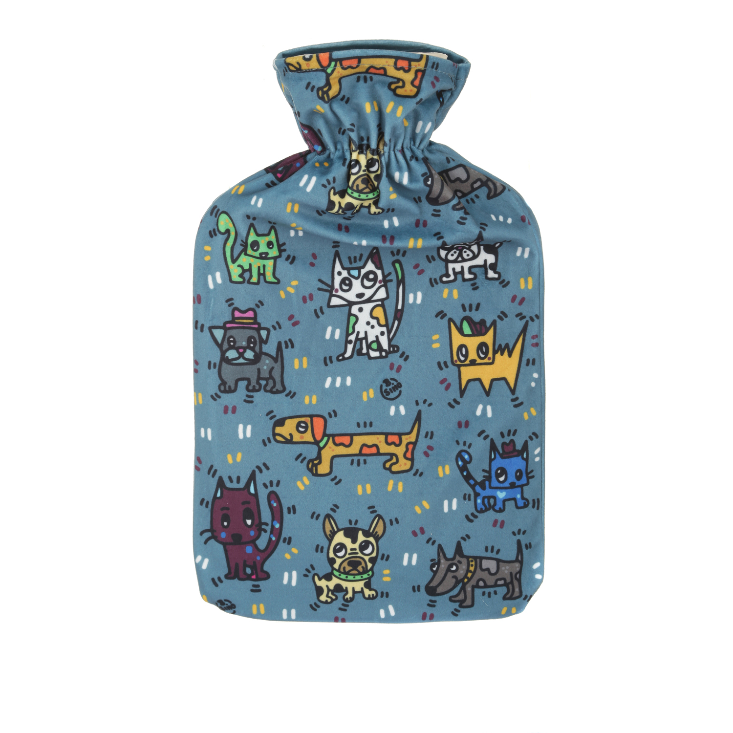 La boule è un accessorio ideale per affrontare l'inverno senza avere freddo in casa. Ti offre un piacevole calore mirato che oltre a scaldarti pancia, mani o piedi, aiuta ad alleviare dolori muscolari e crampi mestruali. La copertura azzurra è arricchita da simpatici cagnolini e gattini realizzati in esclusiva per dallo street artist Simone Bonetta, in arte B.Simo. Morbida e delicata sulla pelle, renderà i tuoi momenti di relax sul divano ancora più piacevoli ed eviterà il contatto diretto con la boule in gomma. Al suo interno puoi versare fino a 2 litri di acqua bollente e ne manterrà la temperatura per diverse ore. Un'idea regalo perfetta per i più freddolosi che in più ti far risparmiare sull'uso di stufette, termosifoni e riscaldamente in generale. La borsa è sfoderabile per un comodo lavaggio in lavatrice a 30°.