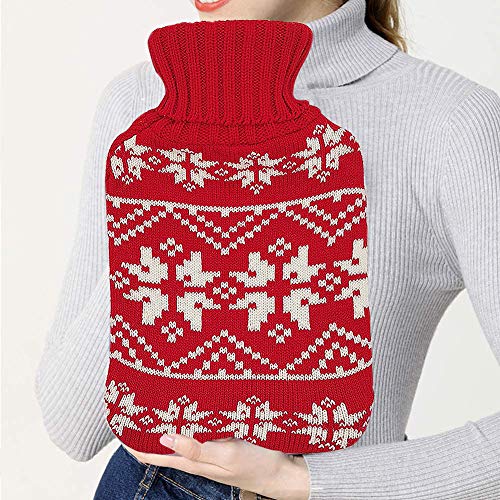 Usa materiale in gomma di alta qualità, tieni caldo a lungo, la capacità è adatta al tuo uso, il thermos è dotato di una giacca a maglia morbida, una giacca staccabile, 20 cm x 30 cm, 1000 ml, 390 g, modello fiocco di neve rosso di Natale