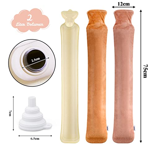Borsa dell'acqua calda lunga, con rivestimento morbido con 2 coperture super morbide, borsa dell'acqua calda grande 2 litri - 73 x 13 cm alta capacità - Borsa dell'acqua calda per spalla, scaldacollo