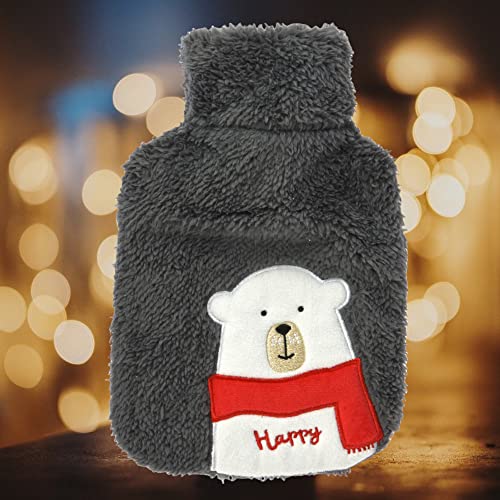 Borsa dell'acqua calda con morbido rivestimento in peluche e grazioso motivo con animali ricamati, 28 x 18 cm, 0,85 litri (orso di ferro)