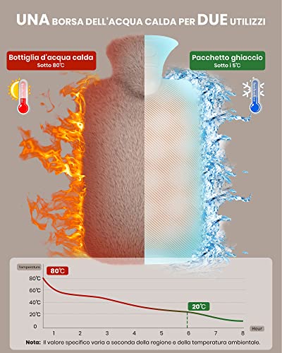 【Facile da usare】Basta svitare il coperchio della bottiglia, riempirla per 2/3 con acqua calda e riavvitare il coperchio. L'acqua rimane nella bottiglia e mantiene la sua temperatura liquida. Basta riempirla con acqua calda per godersi un inverno al caldo (Nota: si prega di riempire la borsa con 2/3 di acqua calda, non piena. e non riempire mai la bottiglia con acqua bollente, la temperatura dell'acqua calda deve essere inferiore a 80 ℃).